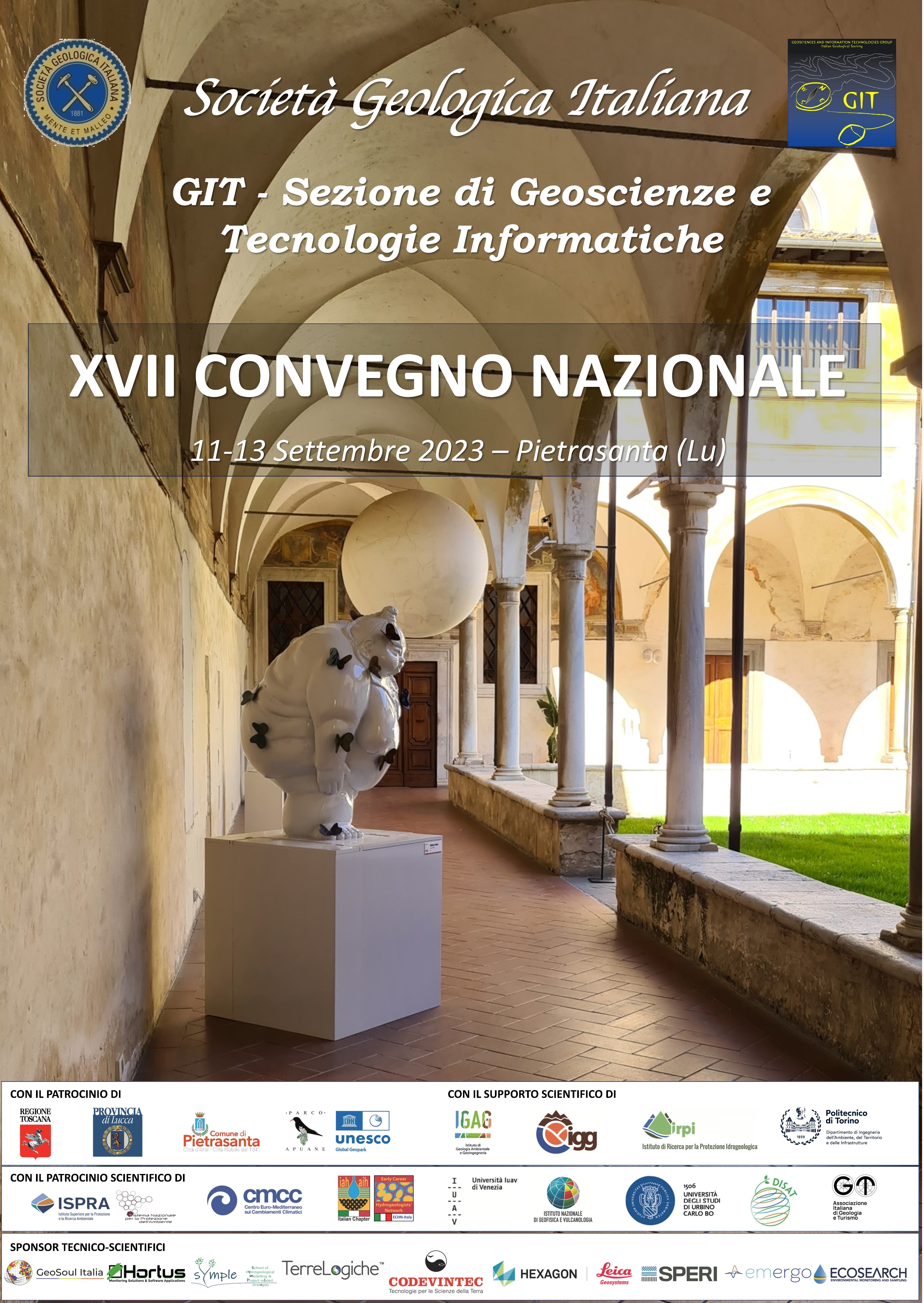 Il XVII Convegno Nazionale della Sezione “GIT – Geosciences and Information Technologies” della Società Geologica Italiana si svolgerà dal 11 al 13 settembre 2023, presso il Chiostro di Sant’Agostino, nel Comune di Pietrasanta (LU).